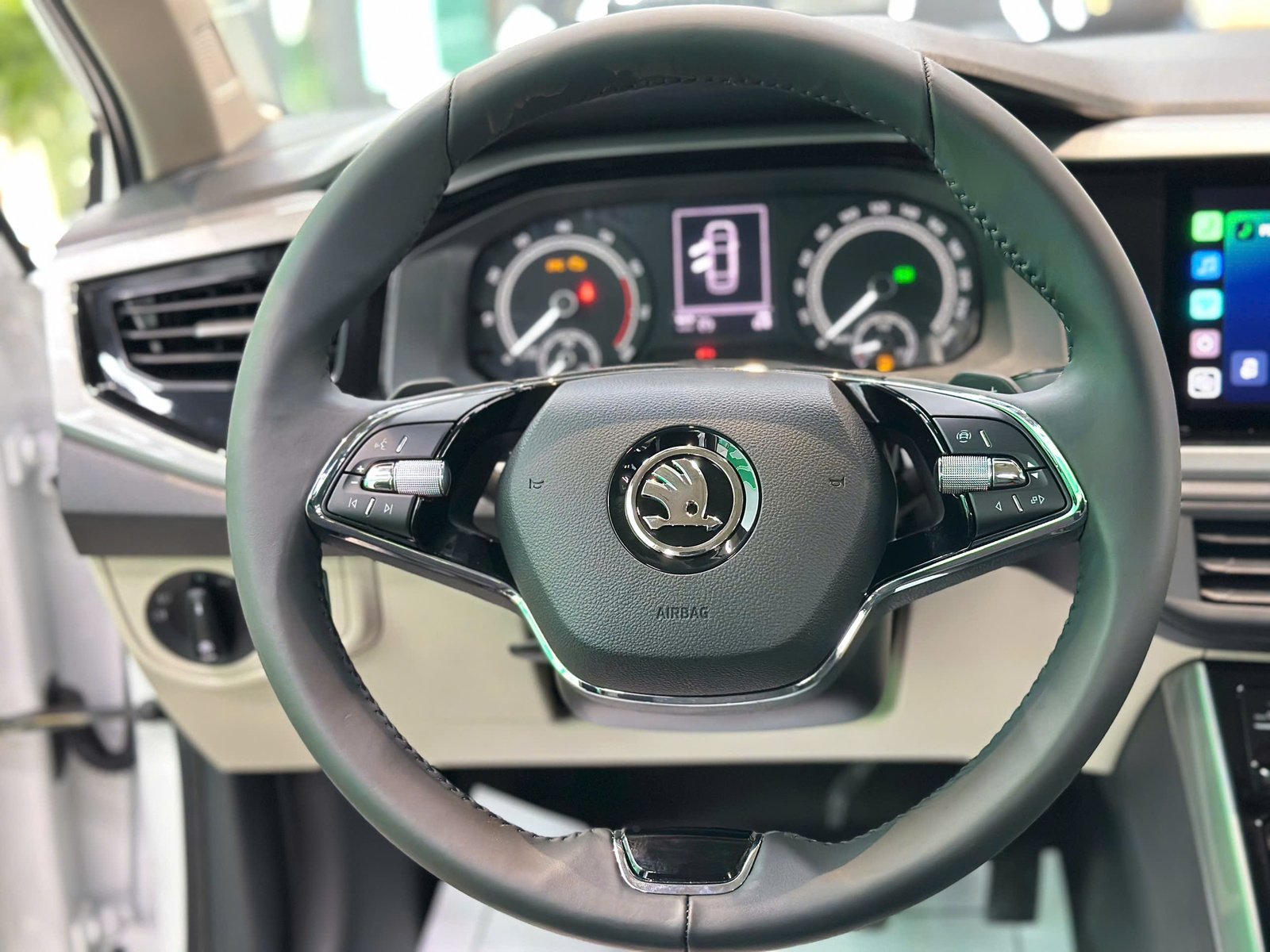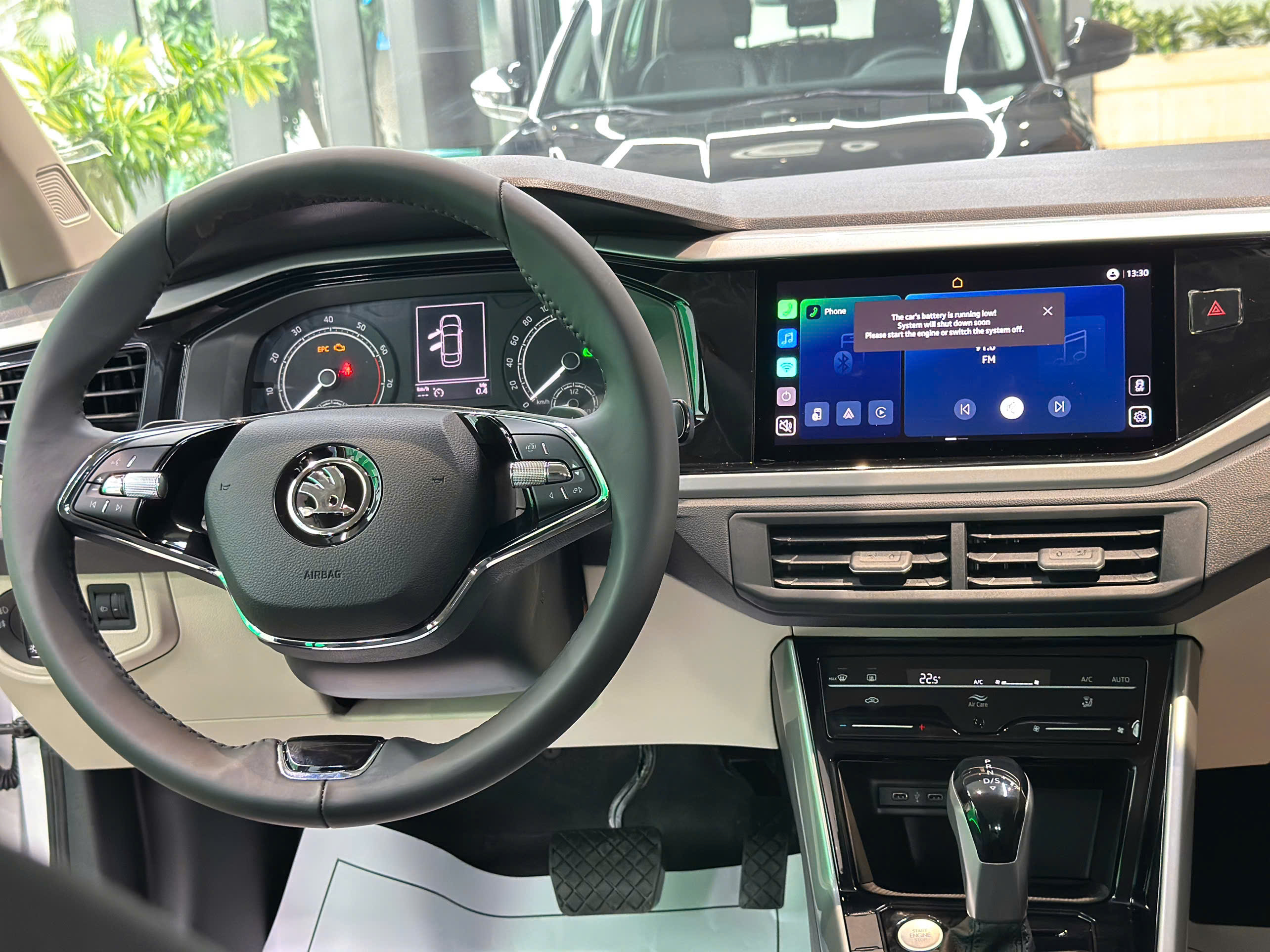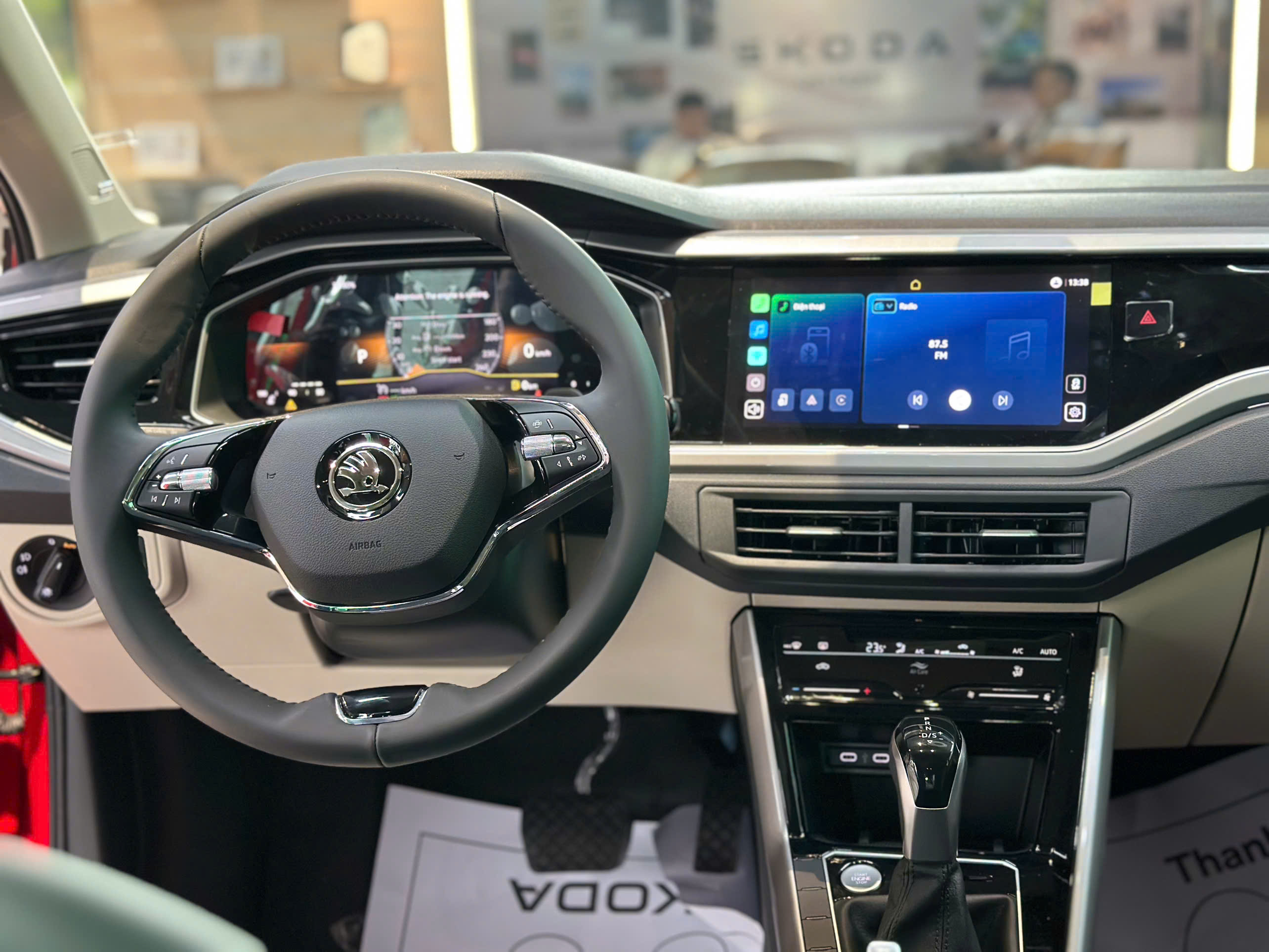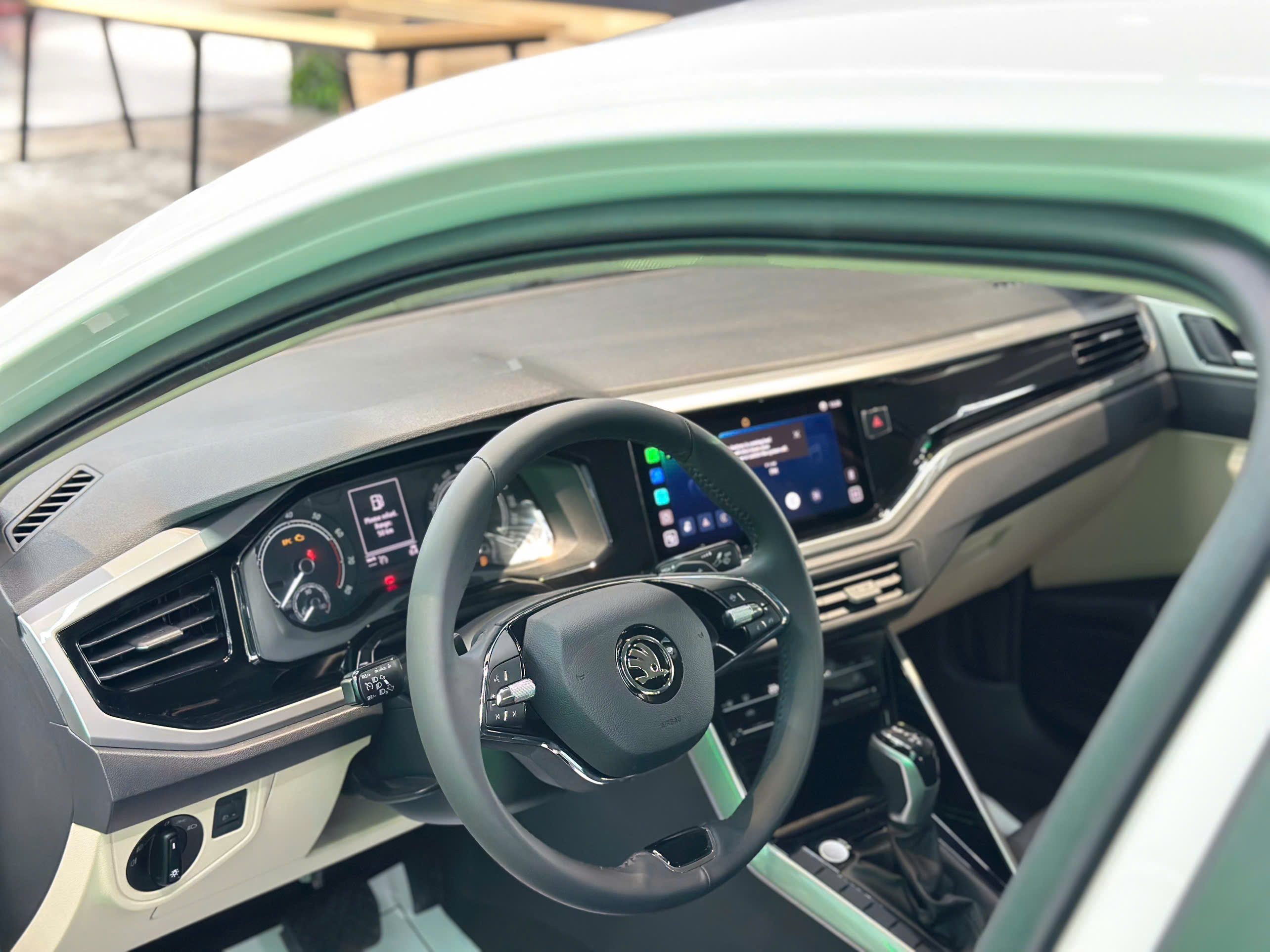 Slavia khéo léo dung hòa giữa truyền thống và hiện đại: giữ lại các chi tiết quen thuộc như cửa gió tròn, phanh tay cơ, nhưng đồng thời bổ sung công nghệ mới như màn hình giải trí cảm ứng 8 inch, đi kèm hệ thống âm thanh 8 loa. Hệ thống điều hòa cảm ứng tích hợp công nghệ AirCare lọc bụi mịn PM2.5, kết hợp sạc không dây 15W và 4 cổng USB-C bố trí trước – sau, đảm bảo tiện lợi tối đa cho người dùng.