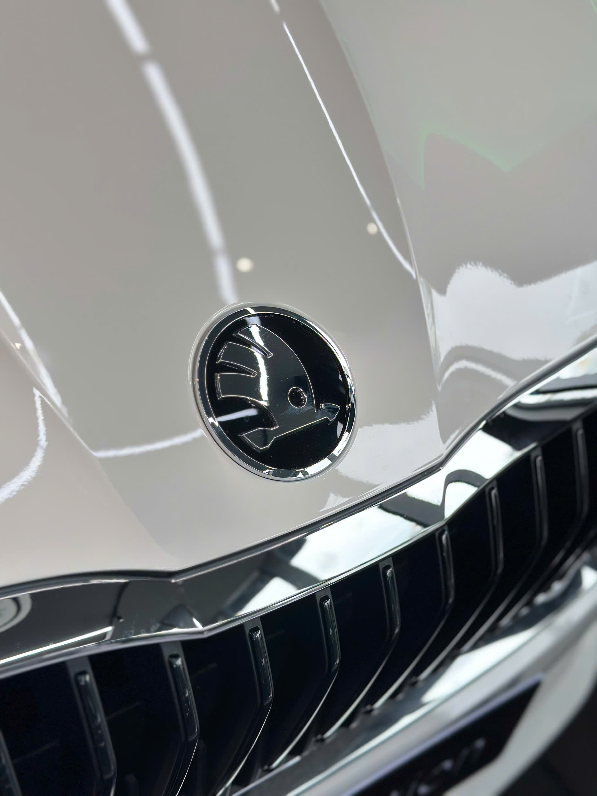 Phần đầu Slavia Ambition tạo ấn tượng mạnh mẽ với cản trước vững chãi, lưới tản nhiệt phụ dạng tổ ong, đèn sương mù bố trí gọn gàng cùng đường viền bạc tinh tế. Nắp capo dập gân nổi khỏe khoắn kết hợp cụm đèn pha kích thước lớn, tăng thêm sự cuốn hút và bề thế cho ngoại hình.