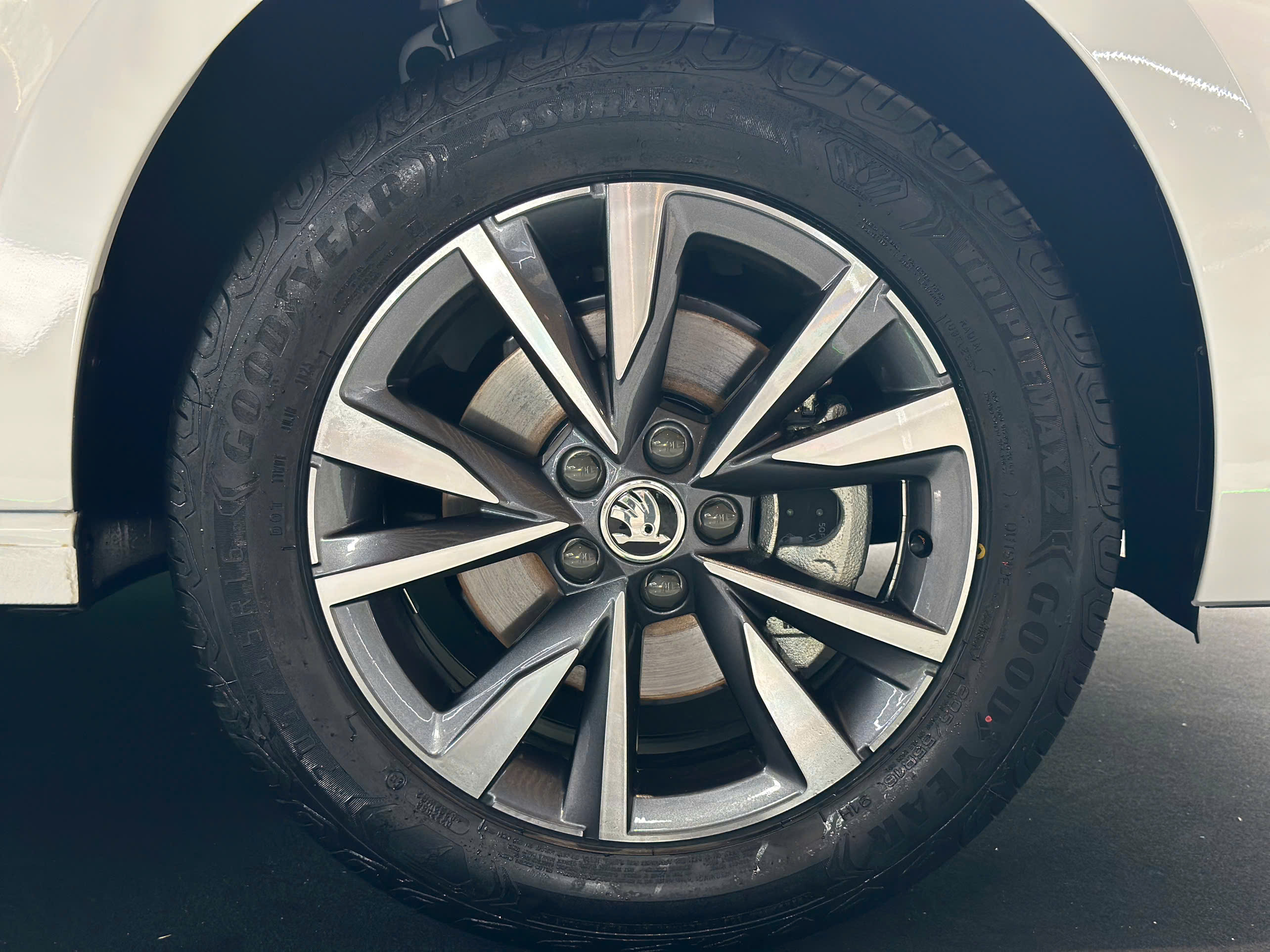 Slavia Ambition trang bị bộ mâm hợp kim 5 chấu kép kích thước16 inch, cùng ăng-ten vây cá thể thao tăng thêm chất năng động.